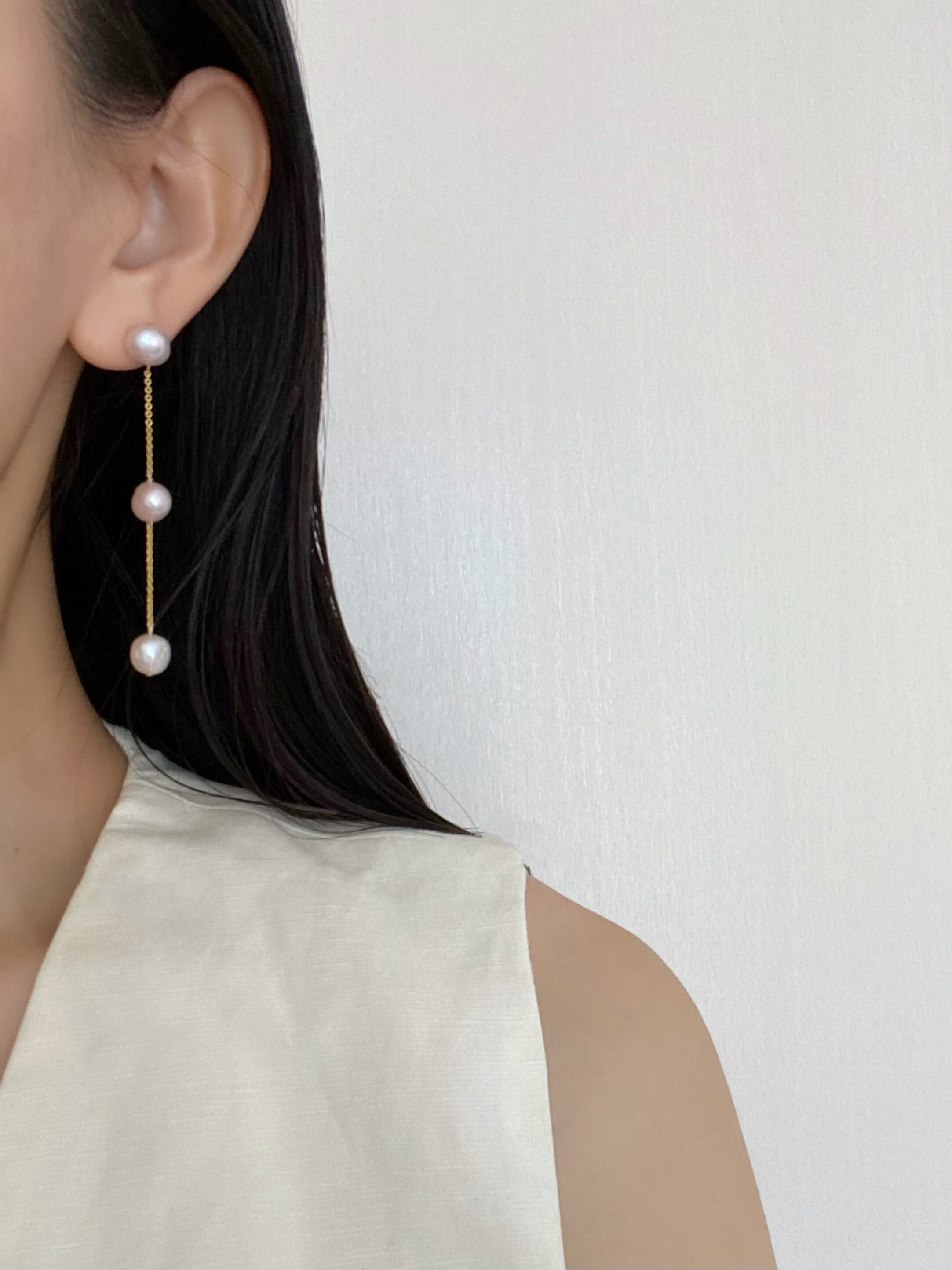 春気分を盛り上げてくれるナチュラルカラーパールの3連イヤリング