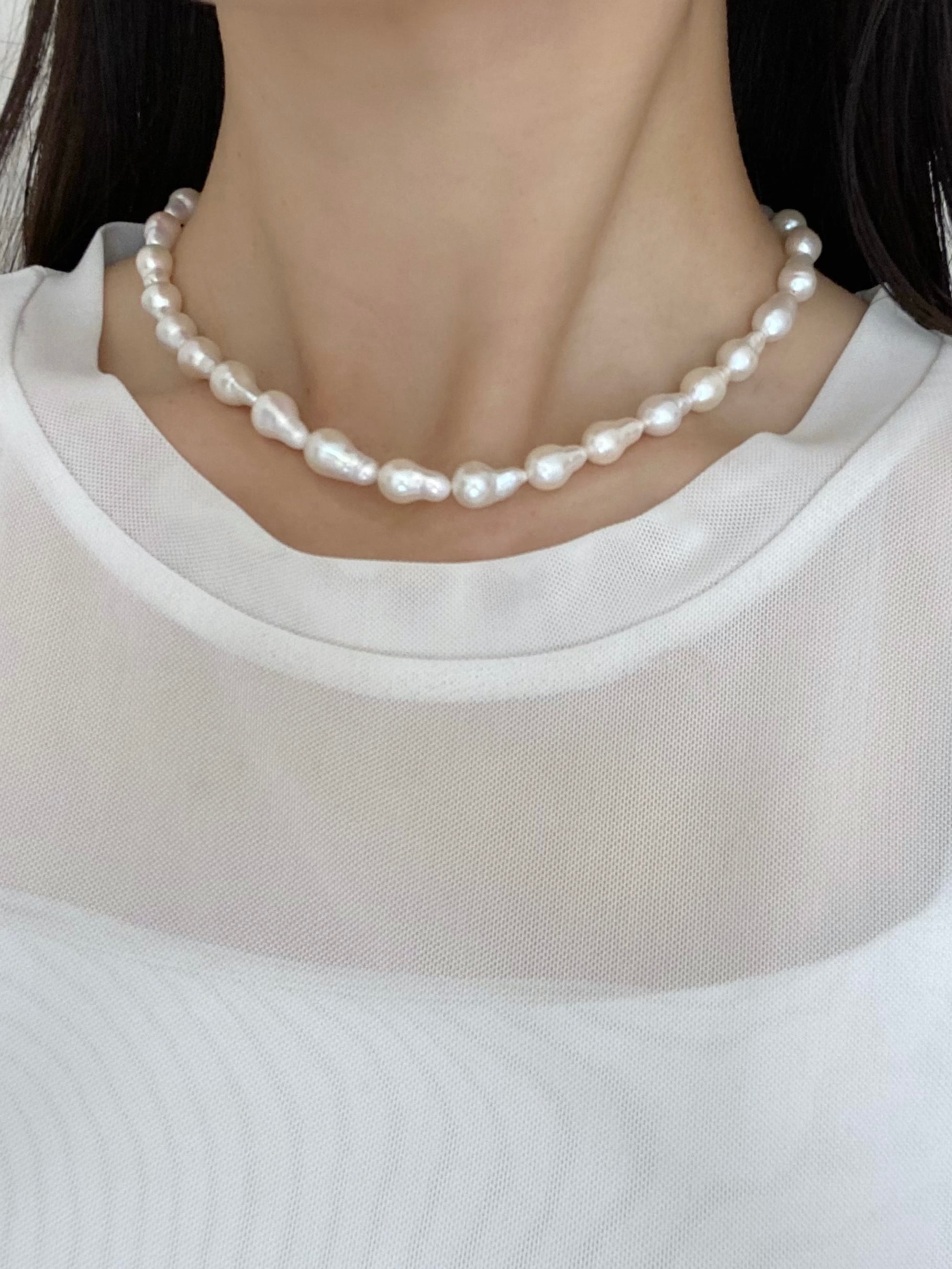 オイスターバロックパールが小さくなったような形のバロックパールネックレス
