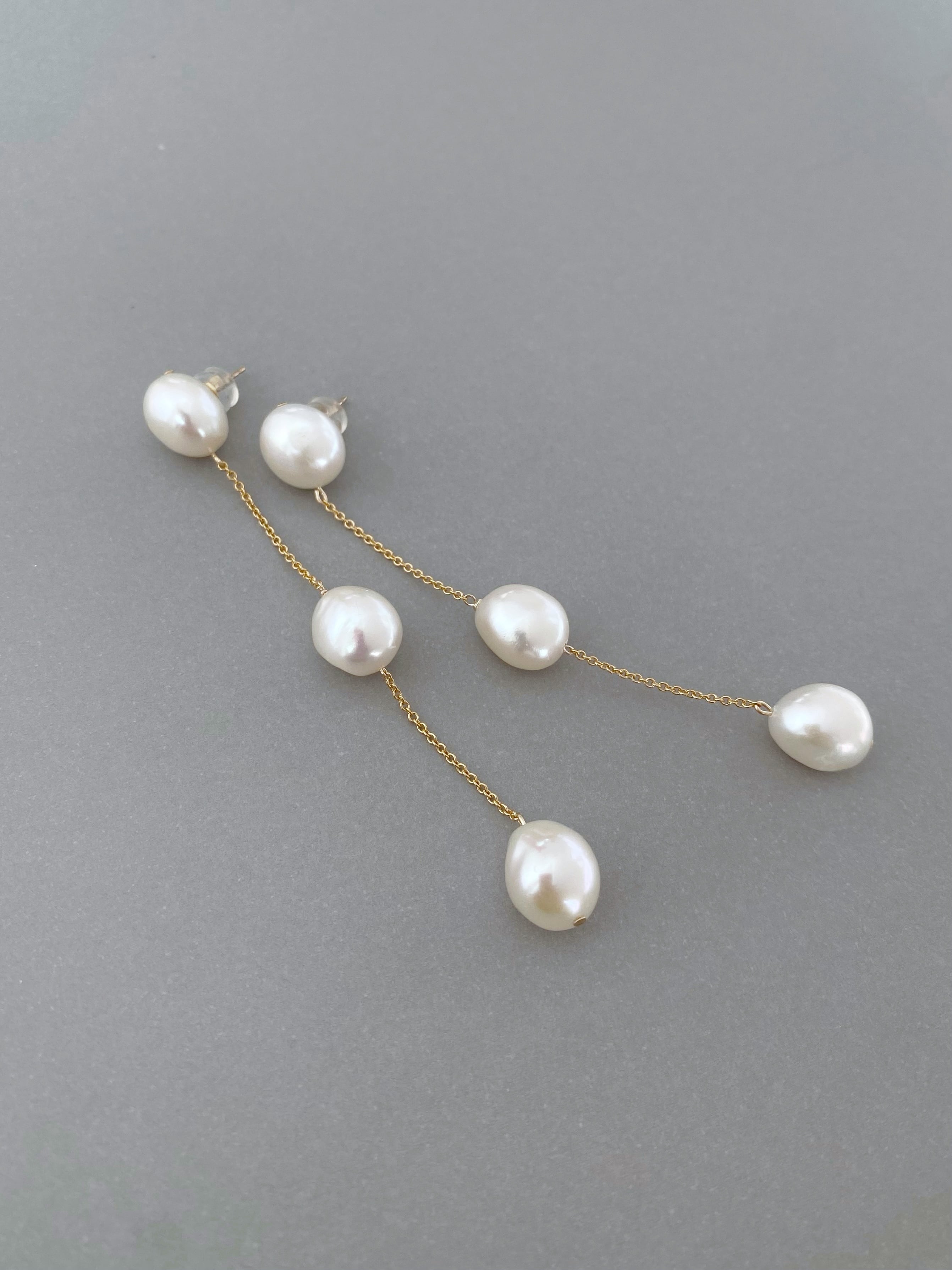 上品さと華やかさを兼ね備えた3 drop pearl earrings